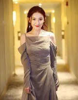 吊带露肩设计的连衣裙,作为一种经典而富有表现力的时尚语言,在热依扎的身上被赋予了新的生命。它不仅仅是一件衣物,更成为了表达个人气质与身体自信的媒介。露肩设计巧妙地展露出优美的肩部、锁骨与脖颈线条,这种适度的肌肤展露,并非直白的张扬,而是一种含蓄而高级的性感,源自于对自我身体的坦然与欣赏。吊带的纤细与连衣裙整体的垂坠感形成对比,既凸显了女性的纤细柔美,又通过流畅的裙身轮廓营造出大方的气场。